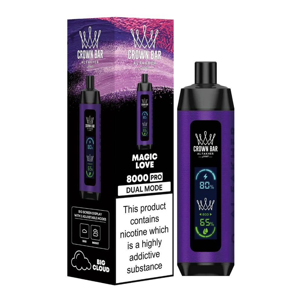 Elevate your vaping with Al Fakher’s Magic Love Crown Bar—enchanting aromas, advanced features, and luxurious performance.