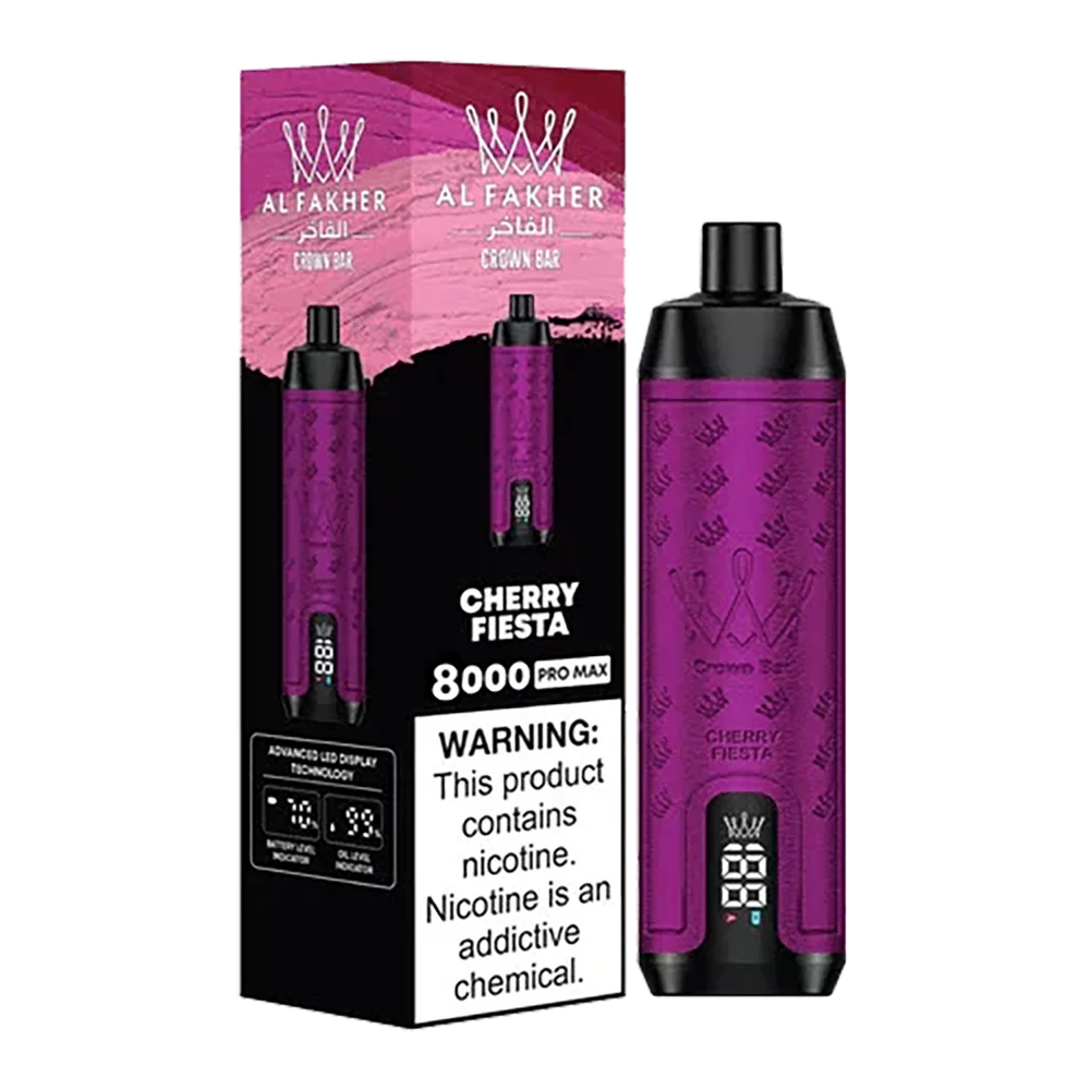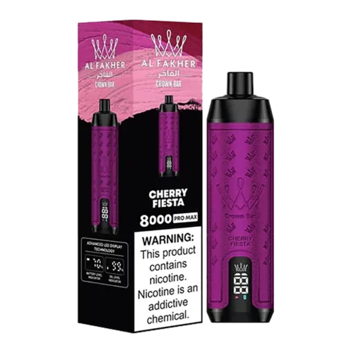 Elevate your vaping with Al Fakher’s Cherry Fiesta Crown Bar—vibrant cherry bliss, advanced features, and long-lasting satisfaction.